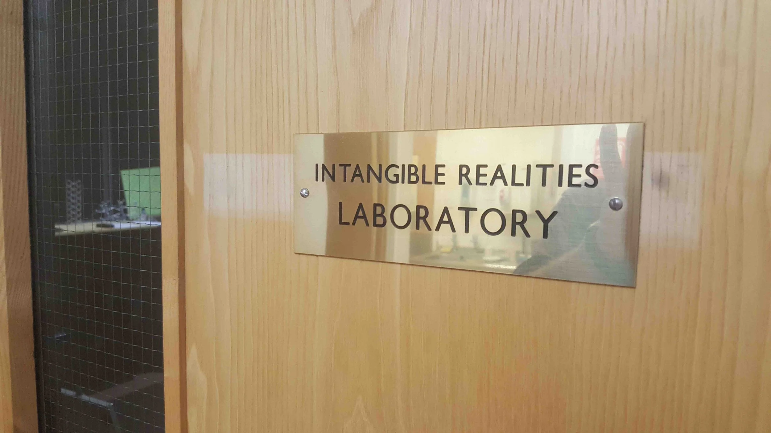 THE INTANGIBLE REALITIES LABORATORY 2 Aug Written By author Given how many times I’ve walked into the lab and seen this kind of thing going on, ‘Intangible Realities Laboratory’ definitely seems appropriate. And now that we have a shiny brass plaque, the IRL is official. author