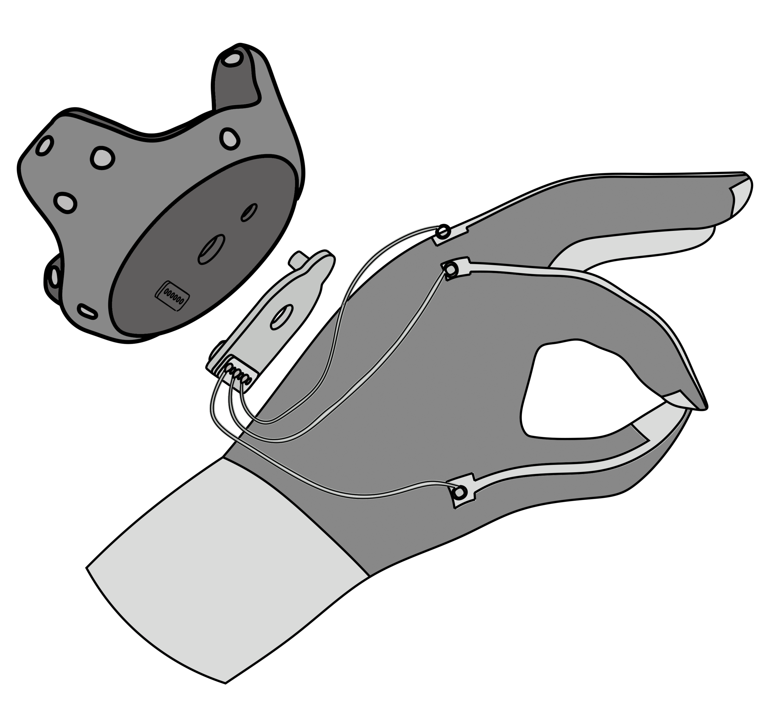 They are called 'mudra' gloves because you pinch the index and forefinger with the thumb to make a connection. The current design and mount are for the HTC vive but can be adapted for other systems.